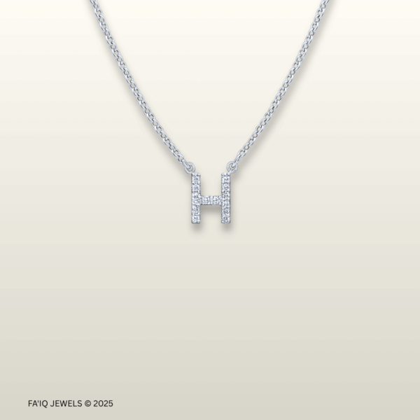 A personalised diamond letter pendant crafted in solid 18K white gold. Set with brilliant round diamonds, this elegant “H” initial necklace adds a meaningful touch to your everyday style. A perfect gift for yourself or a loved one — timeless, personal, and refined.
