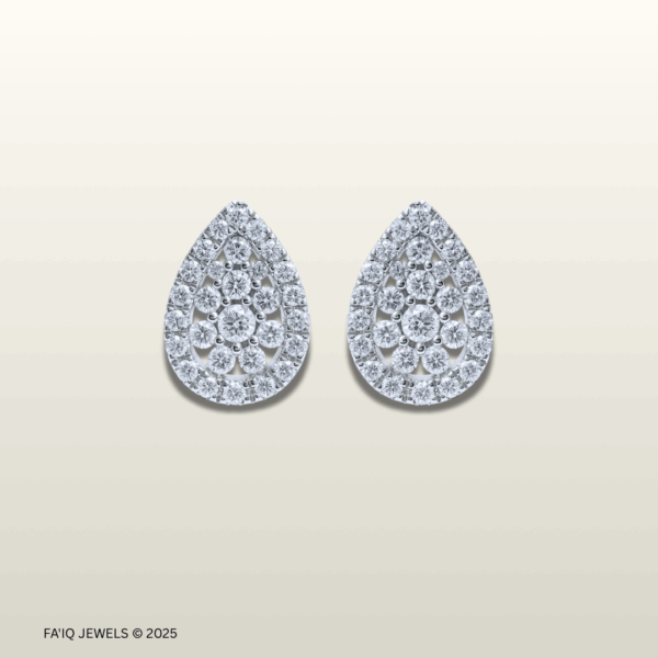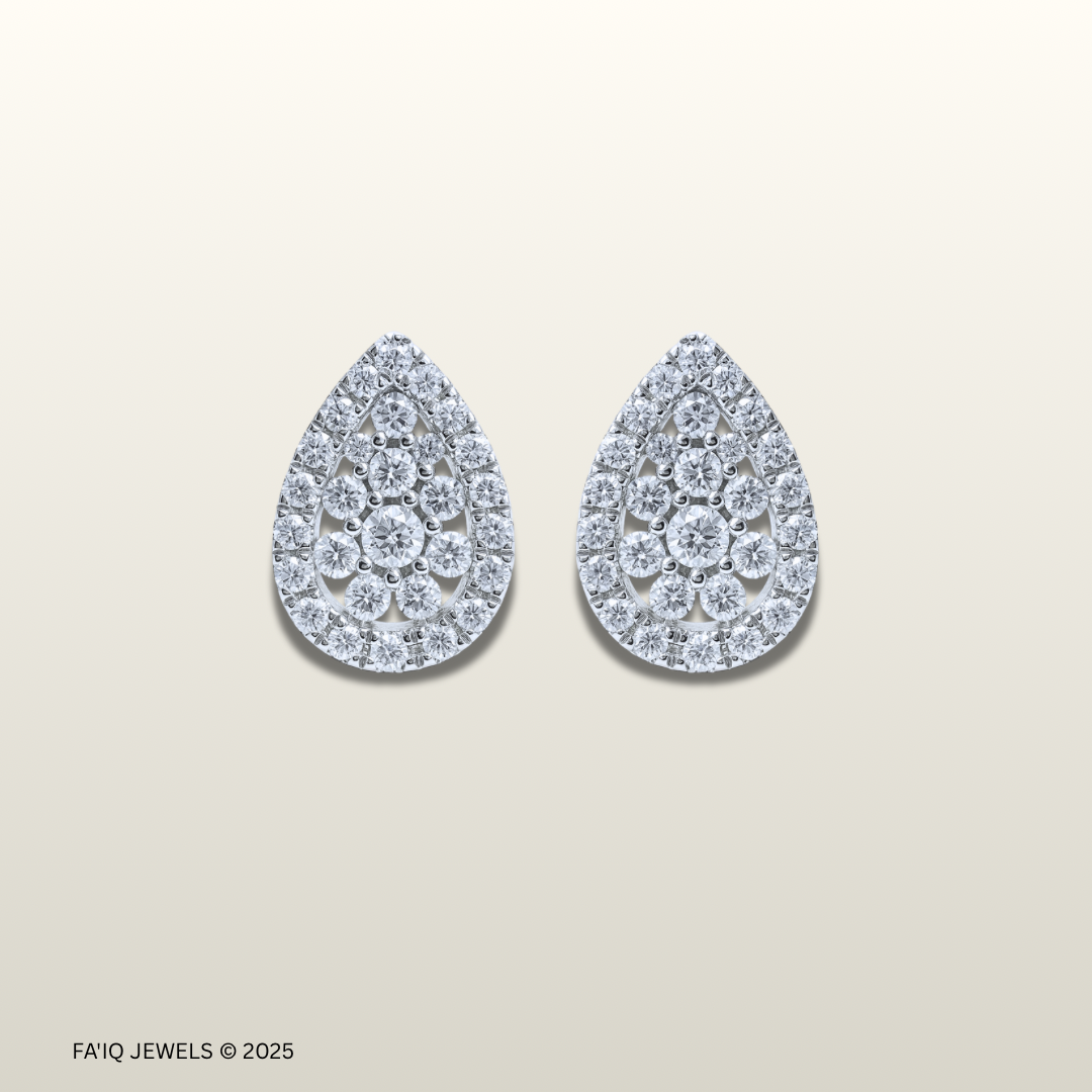 A timeless teardrop silhouette crafted in 18K white gold, fully embellished with brilliant round diamonds for maximum sparkle. Elegant and graceful, this pair delivers a luxurious radiance that transitions effortlessly from day to evening. Perfect for special occasions, evening wear, or as a statement everyday piece.